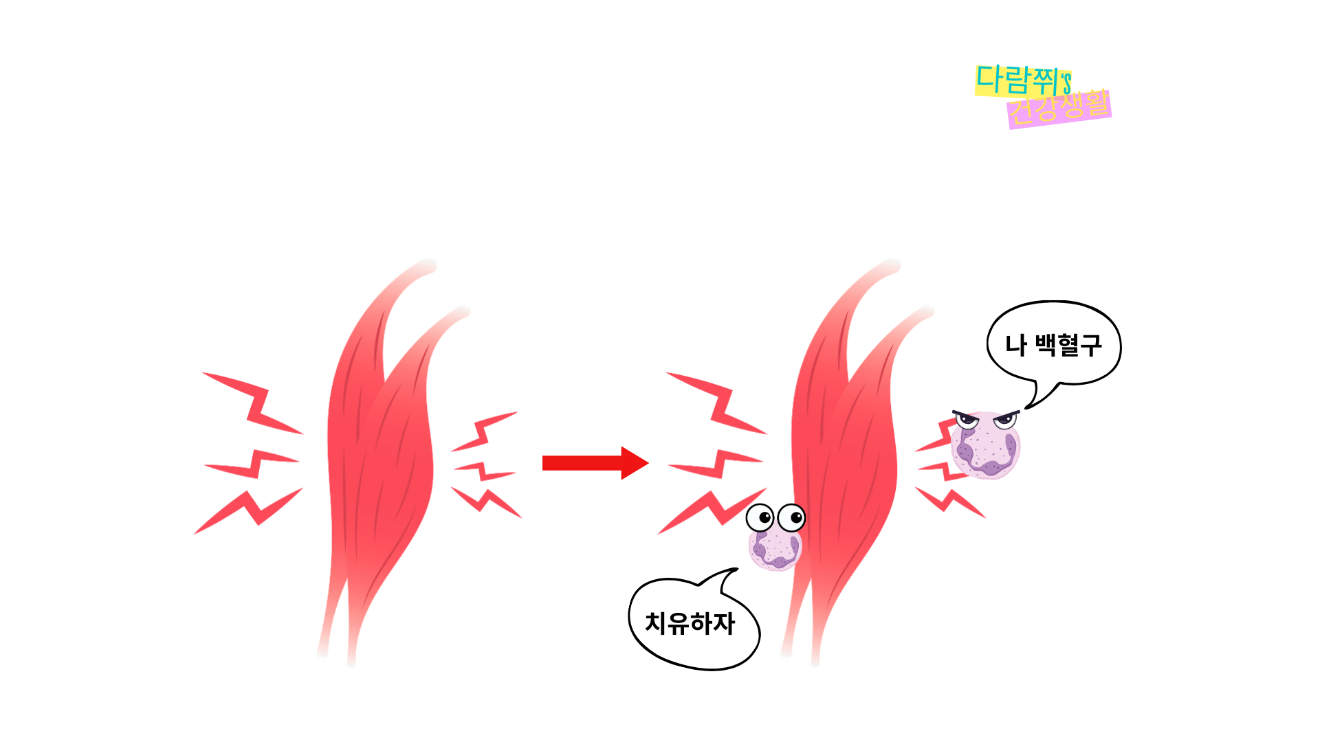 근육이 손상되면 우리 몸은 염증 반응을 일으켜 회복을 돕는다. 이 과정에서 염증 매개 물질이 분비되며 통증이 유발된다. 흔히 운동 중 근육통이 젖산 축적 때문이라고 생각하지만, 젖산은 운동 후 수시간 내에 대부분 제거되므로 지연성 근육통의 직접적인 원인은 아니다.