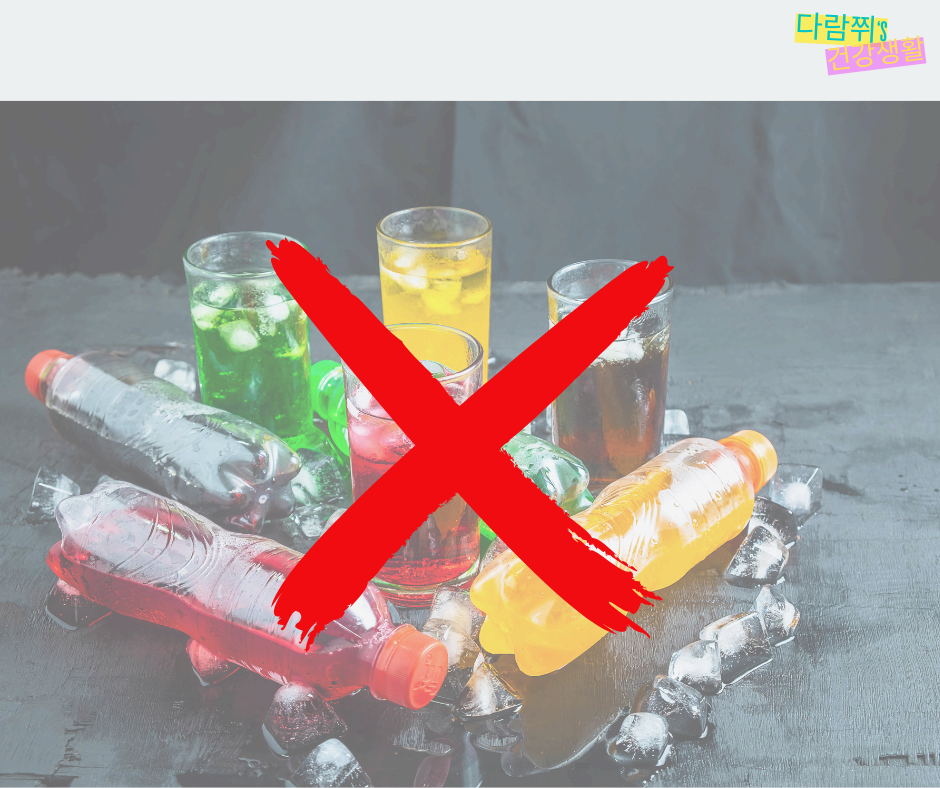 - 탄산음료 대신 물, 탄산수, 허브차를 선택한다.