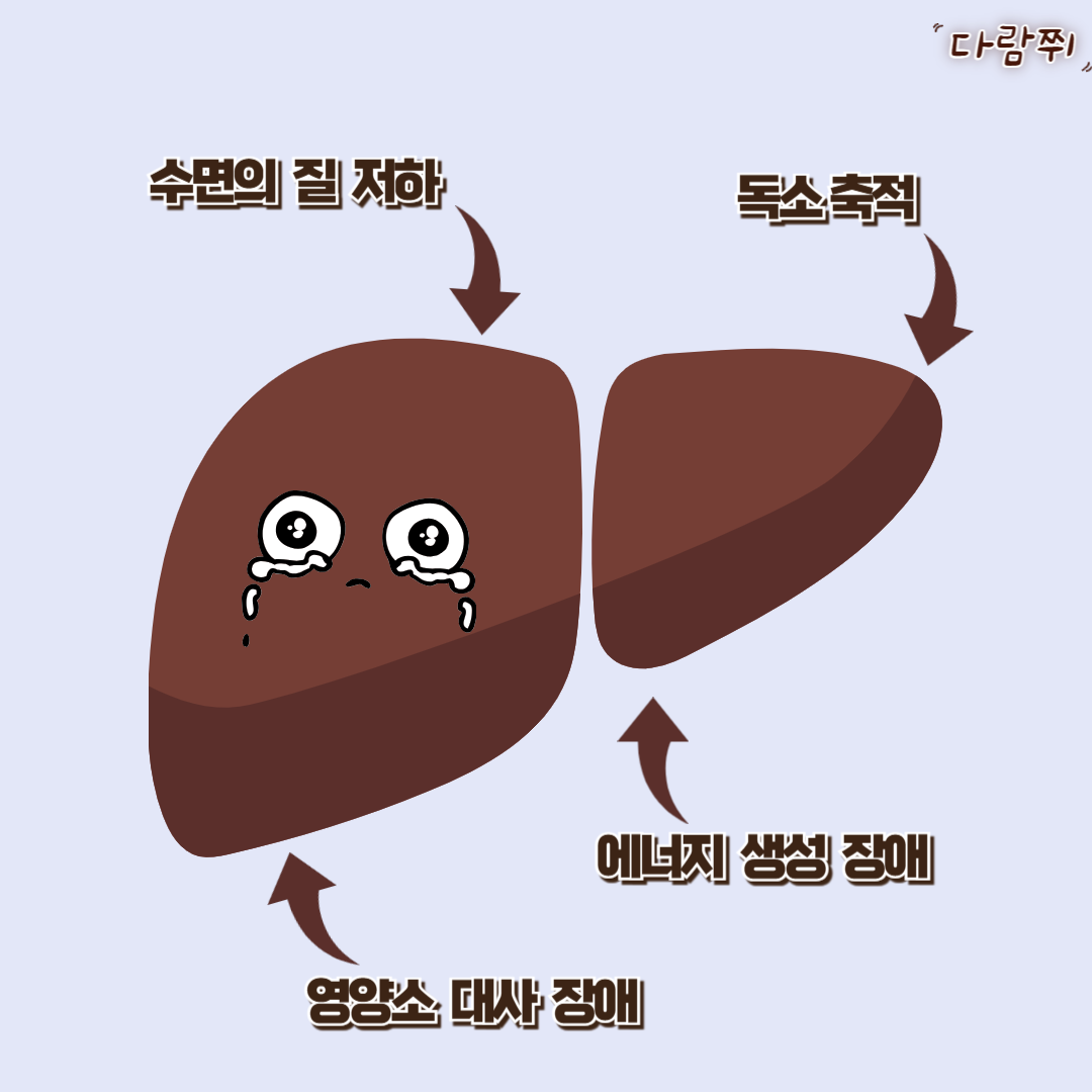 - 간이 나쁘면 체내 염증 수치가 증가하고, 이는 수면 장애를 유발할 수 있다.